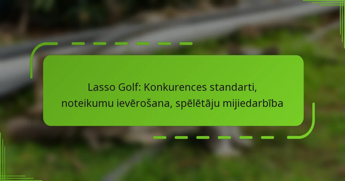 Lasso Golf ir regulēts ar konkurences standartiem, kas nosaka prasmju līmeņus, punktu sistēmas un spēlētāju atbilstību, nodrošinot taisnīgu un strukturētu vidi visiem dalībniekiem. Oficiālie noteikumi, ko izstrādājušas regulējošās iestādes, veicina konsekvenci spēlē, aptverot būtiskos aspektus, piemēram, spēlētāju uzvedību un aprīkojuma standartus. Turklāt pozitīva spēlētāju mijiedarbība ir būtiska, lai uzlabotu konkurences atmosfēru, uzsverot komunikāciju, komandas darbu un sportiskumu visā spēles laikā.