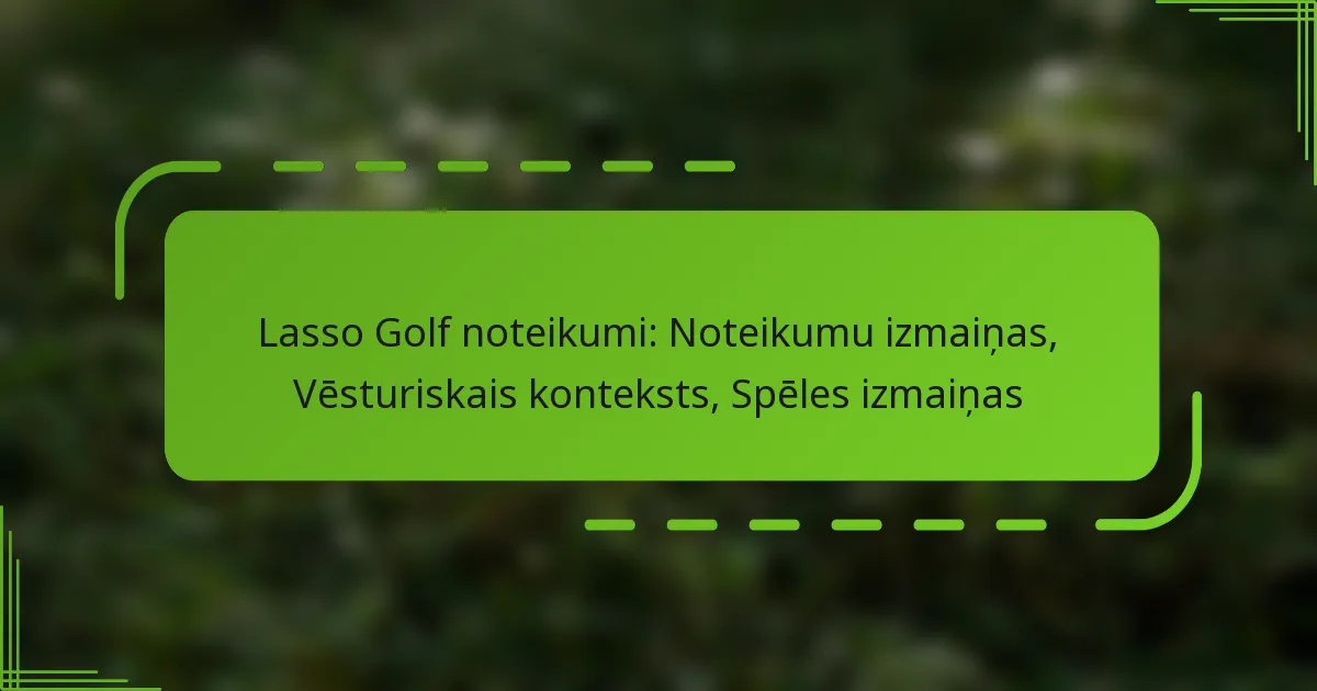 Lasso Golf apvieno tradicionālos golfa elementus ar inovatīvām spēles izmaiņām, radot unikālu pieredzi spēlētājiem. Nesen ieviestās noteikumu izmaiņas ir paredzētas, lai uzlabotu spēles ātrumu un pieejamību, attālinoties no konvencionālā golfa, vienlaikus saglabājot sporta pamatessenci. Vēsturiskā konteksta un šo noteikumu attīstības izpratne ir būtiska, lai novērtētu spēles attīstību un tās ietekmi no citiem sporta veidiem.